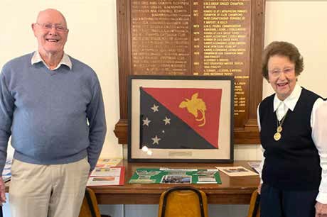 At the May meeting, Ross & Pat Johnson presented the original ‘PNG Flag’, made by Pat (below—and also see the article in ‘Unity in Diversity’ on page 45).